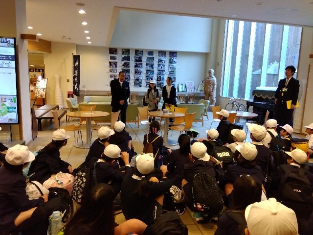 6年 お土産購入タイム終了。今からお昼ごはんの場所へ移動します。