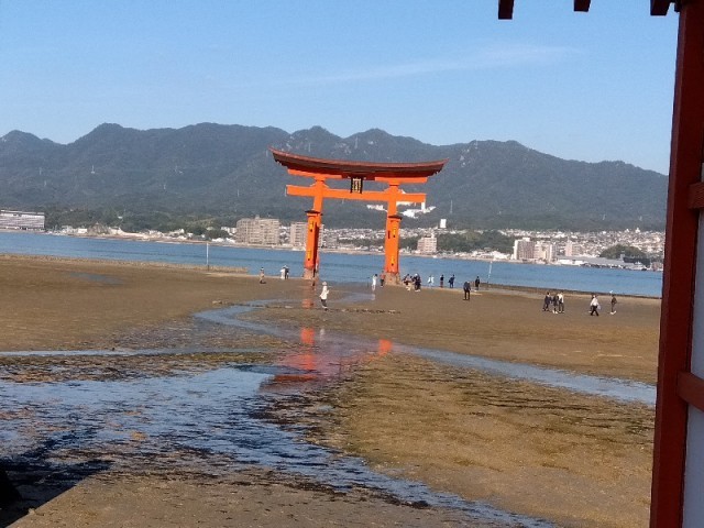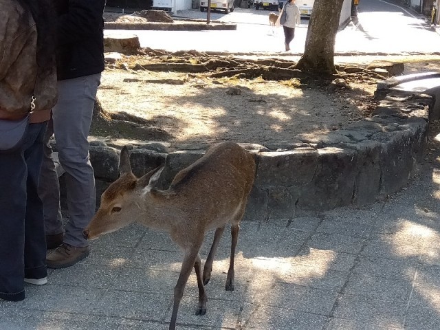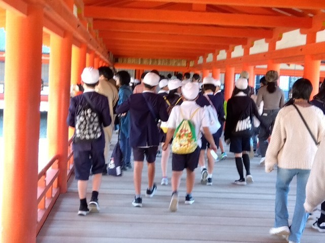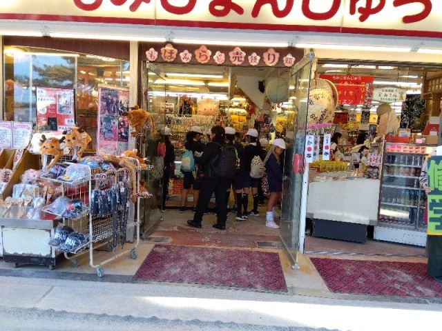 6年 宮島に着きました。鹿に歓迎してもらいながら、厳島神社の見学をしました。