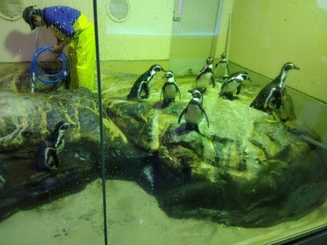 6年 宮島水族館を見学しています。もうすぐペンギンのふれあいタイムです。