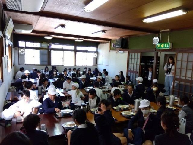 6年 お昼ごはんタイム。宮島でもたくさん歩いたので、みんなお腹ペコペコです。