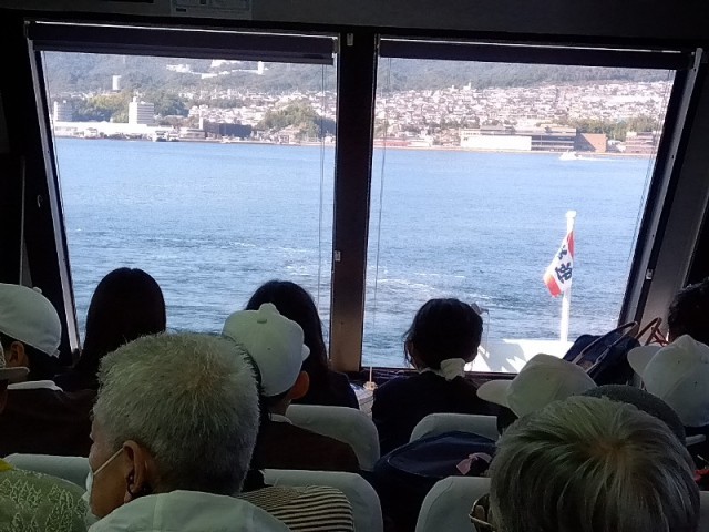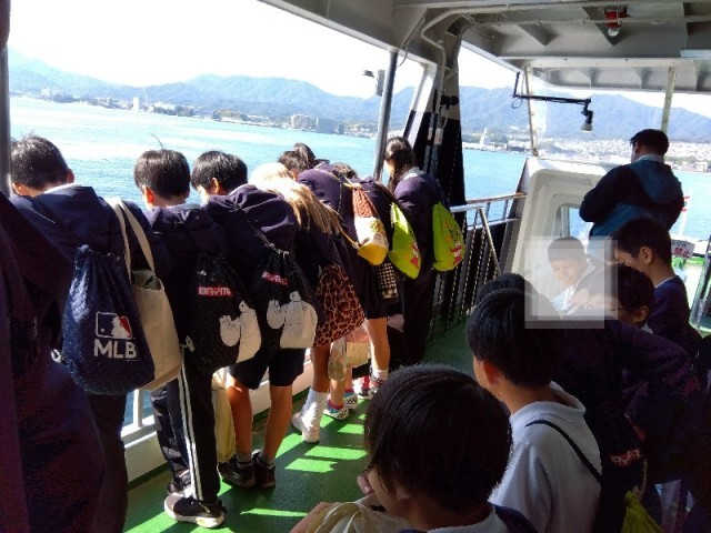 6年 無事にフェリーへ乗り込み、宮島へ向けて出発しました。フェリーが動き出すと、子どもたちは歓声をあげていました。風が冷たいですが、みんな元気いっぱいです。