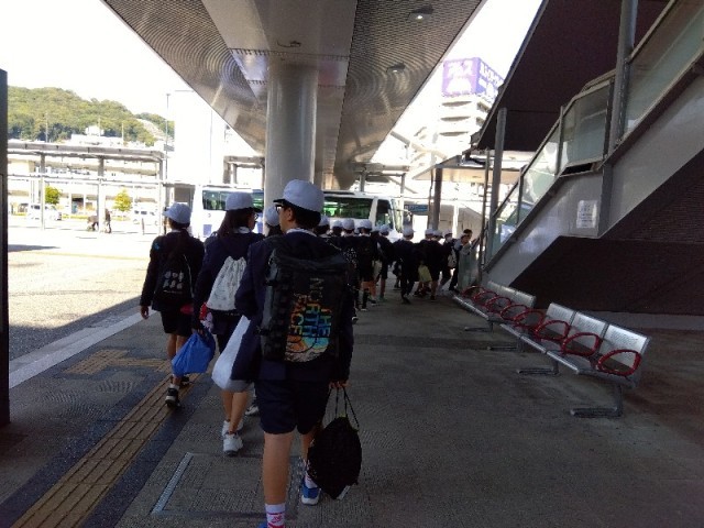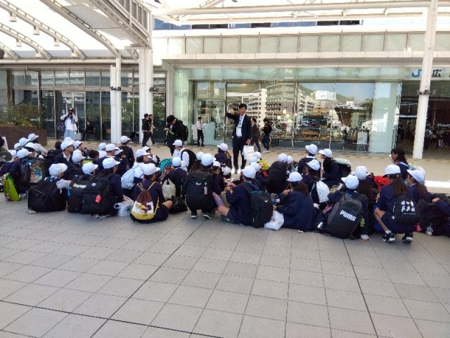 6年 広島駅に着きました。トイレ休憩をして、新幹線に乗るまでしばらく待機です。