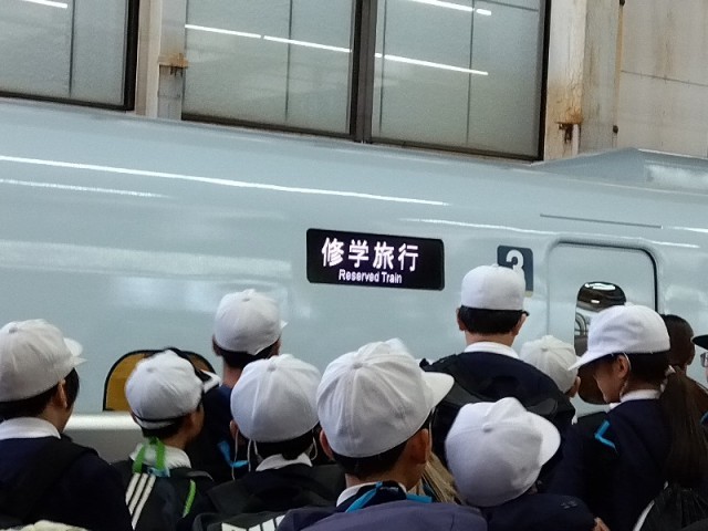 6年 「楽しかった!」とつぶやきながら、新幹線に乗り込みました。お菓子を食べたりトランプをしたりして、元気に過ごしています。