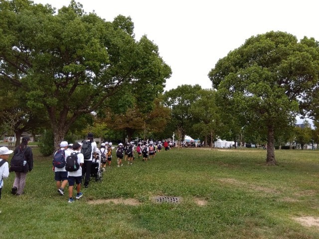 とってもいいお天気です!石川河川公園へ向けて、元気に出発しました。