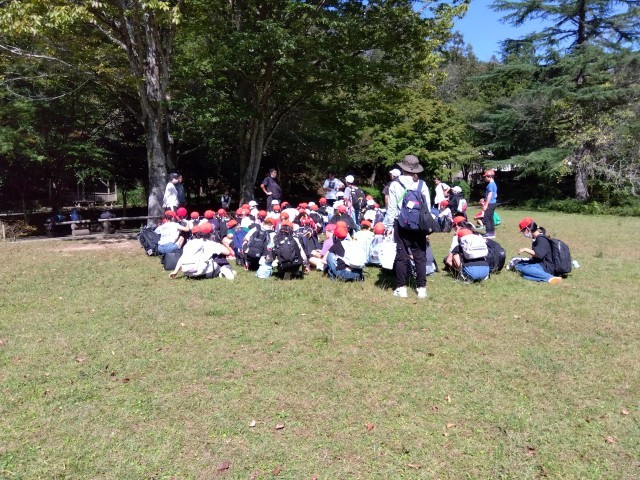 ユニトピアささやまに到着し、入村式をしました。とても良いお天気です。