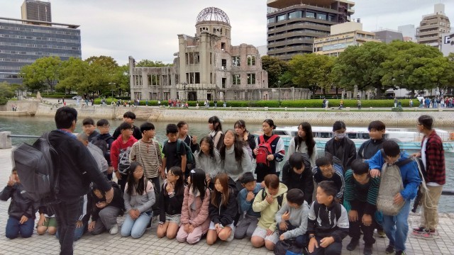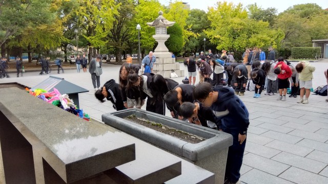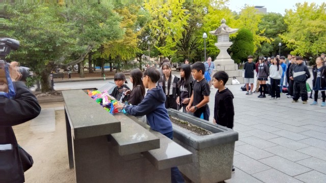 平和記念公園に到着しました。慰霊式を行いました。その後お弁当を食べました。