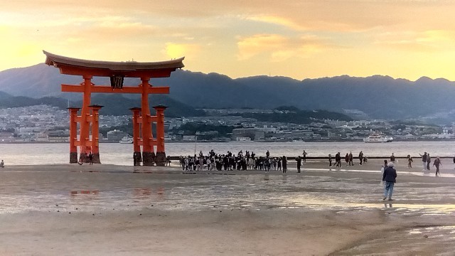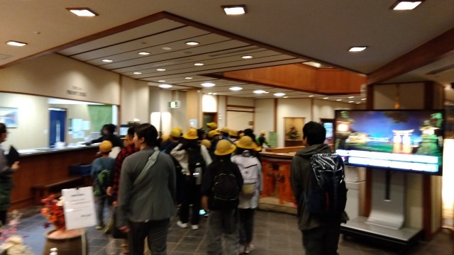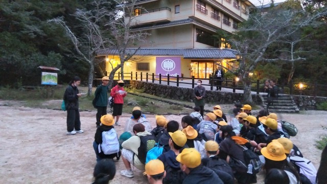 宮島に到着しました。厳島神社で記念写真をとった後、宿舎「杜の宿」に到着しました。