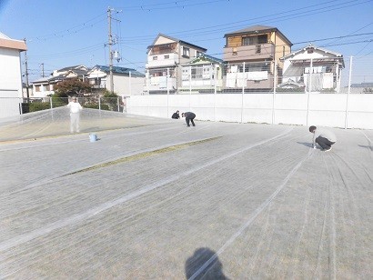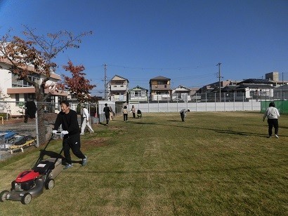 芝生作業を行いました。芝刈りを行い、冬芝の種をまいて養生シートを敷きました。しばらくは芝生広場はお預けです。作業をしていただいた地域のみなさまありがとうございます。12月7日(日)に予定していた芝生作業は芝生の養生のためお休みになります。