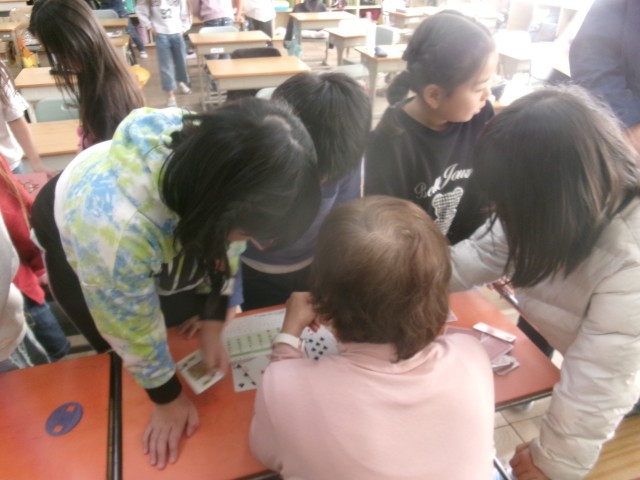 3年の総合の取り組みとして、林はるみさんから聞き取りを行いました。前半は13歳の時に病気で視力が落ちてきたことや、そのあとの体験などをお話してくれました。後半はユニバーサルデザイングッズや視覚障がいの方が使うと便利なグッズを紹介してくれました。子どもたちは休み時間にそのグッズを触ったり、林さんと遊んだりしました。