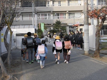松中生があいさつ運動に来てくれました。冬の冷たい空気の中、松中生の「おはようございます!」の元気なあたたかい声が響きました。来てくれた中学生の皆さんありがとうございました。