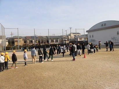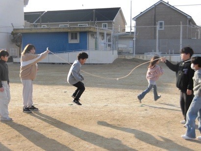 3月6日(金)開催予定のおおなわ大会に向けて全員で練習しました。高学年児童は、はじめて挑戦する1年生にタイミングの取り方や跳び方をやさしく教えていました。