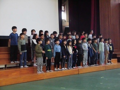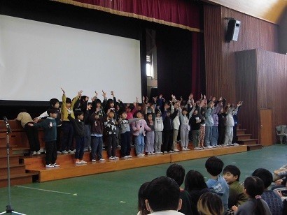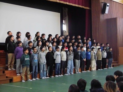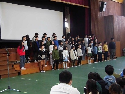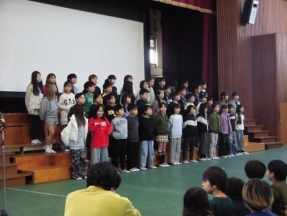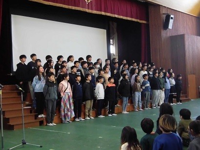 交流音楽会が開催されました。河合小学校と松原西小学校、両校の同学年が一緒に合唱を披露しました。手拍子がおこったり、合唱後は大きな拍手が起こったり体育館は暖かい空気につつまれました。