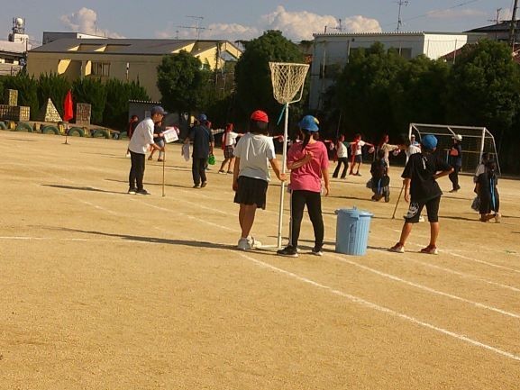 5・6年生は、実際に運動場に出て、自分の仕事を確認しながら練習しました。