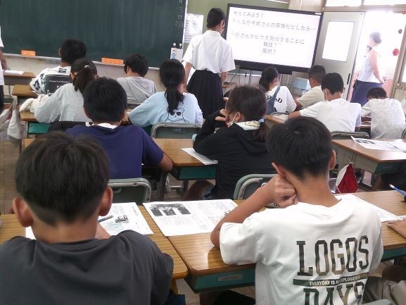 今日は、七中2年生の先輩を招いて、出前授業をしてもらいました。