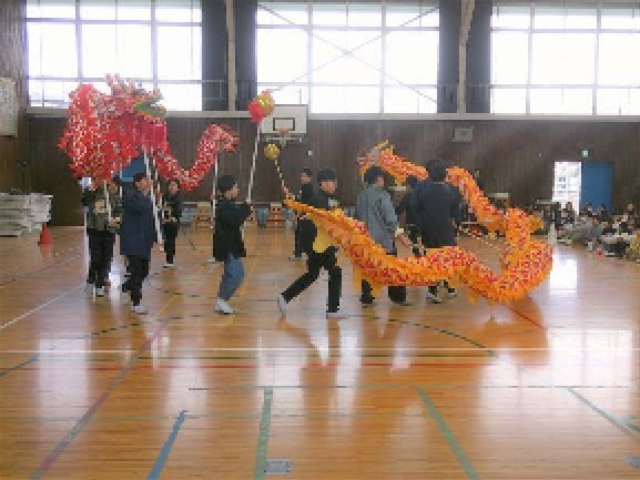 龍の舞とハンカチの舞、軽快なダンスをみんなに見てもらいました。