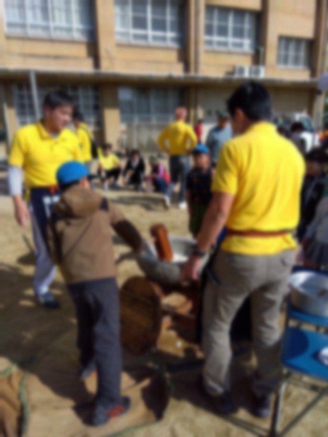 子どもたちが、もちつきの体験をさせてもらいました。