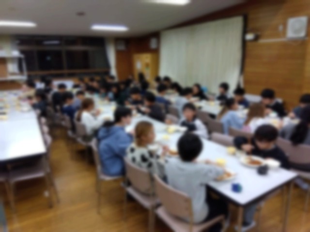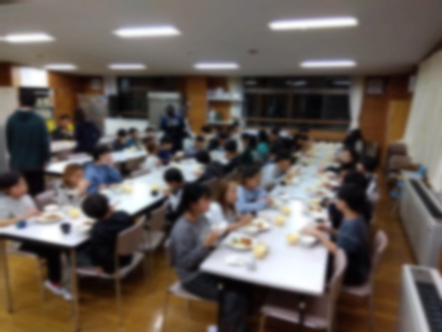 たっぷり身体を動かしたので、みんなしっかり食べてます。食事の後はキャンプファイヤーです。