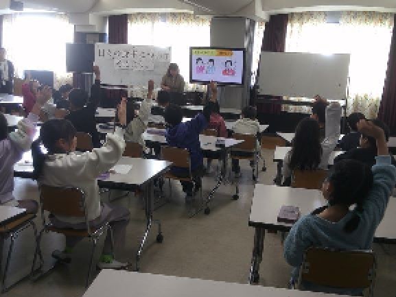 3年生は栄養教諭の先生にも来ていただいて食育の授業、4年生は算数の授業の様子を見ていただきました。