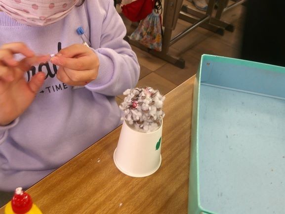 綿やビーズを使って、それぞれ工夫しながら楽しそうに作っていました。