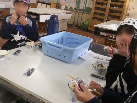 「お鍋で炊くのは初めてだけど、おいしい!」と、にこにこ笑顔で食べる子どもたち。おこげもおいしくいただきました。