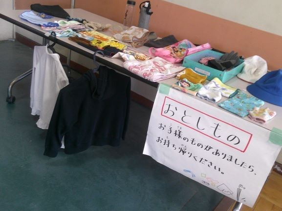 (申し訳ありませんが、落とし主のわからない落とし物は学期ごとに処分させていただきます。)
