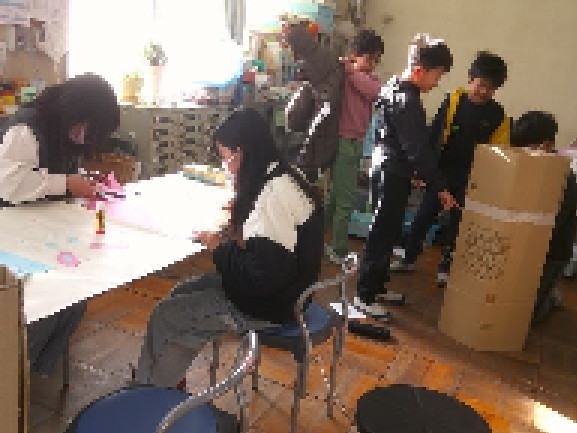 いろんな学校の課題解決に向けて、看板づくりやしおりづくり、給食台みがきや劇の練習と、子どもたちが工夫をこらして取り組んでいました。