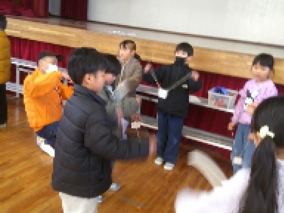 1年生は、地域の民生児童委員の方々から昔遊びを教えていただきました。