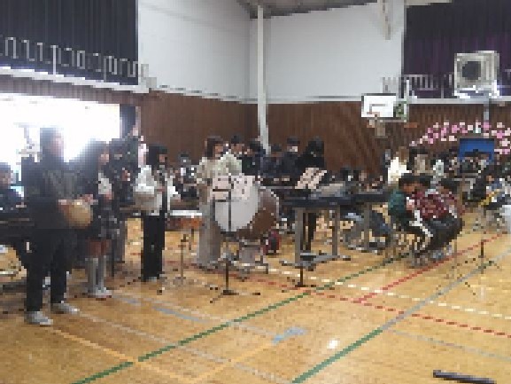 1年生から5年生までの子どもたちから、心のこもった歌や合奏、よびかけが6年生に贈られました。