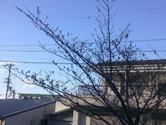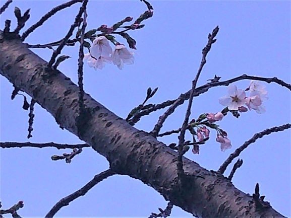 正門のところにある桜の木を見上げると・・