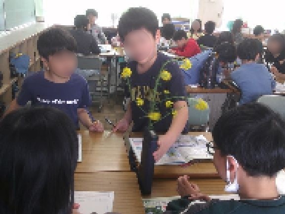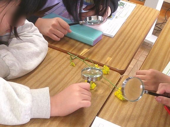 5年生の理科では、菜の花の観察をしていました。