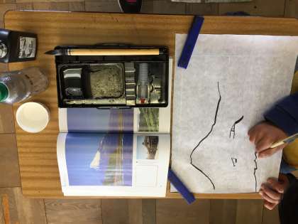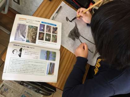 習字道具を出しっぱなしで習字と図工をやってしまう午前中なのです!
