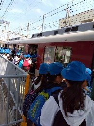 今日は3.4年生の遠足。 さわやかないい天気。 海遊館に行きます。