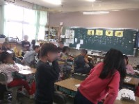 3年生は、視覚に障がいのある方からお話を聞きました。盲導犬がそばについていました...