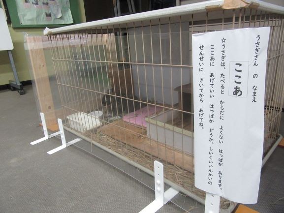 かわいがってあげてね 公開日 2026/04/13 更新日 2026/04/13 校長より 玄関前のゲージによく人が集まっています。「ここあ」といううさぎと触れ合うためです。ここあは人間でいうとかなりのおじいちゃんうさぎですが、みんなの人気者です。ここあもみんなにかまってもらえると嬉しいようです。これからも大切にして、かわいあがってあげてね!
