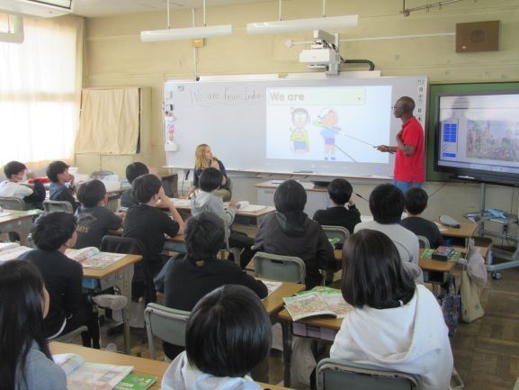 5年生の学級では、アレックス先生とリリー先生の英語でした。