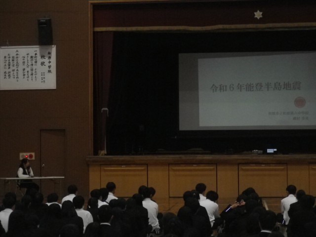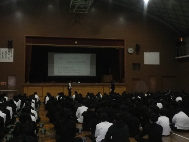 本日、6限目に全校生徒が参加し、震災集会が行われました。