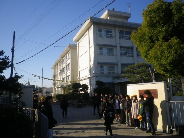 本日、松原小学校の児童会が松中へ朝のあいさつ運動