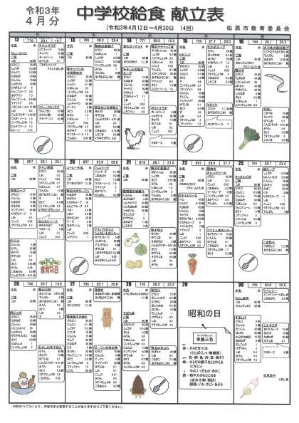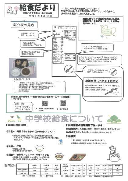 株式会社松ちゃん給食:松二中、松三中、松四中、松七中