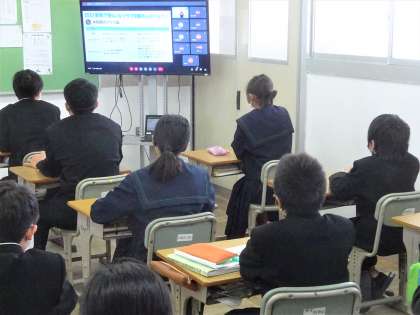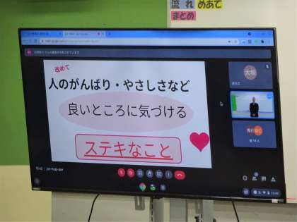 全校集会が、GIGAスクール学習タブレットを活用したビデオ会議ツールを介してオンライン集会により行われました。