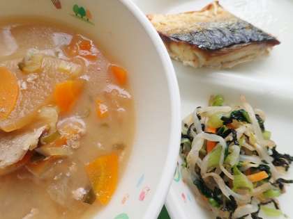 さて、本日(12日)の給食は、鯖の塩焼き、豚汁、のり和え、ごはん、牛乳でした。お魚のメニューでは少し残す生徒もいるかなと心配していましたが、完食の学級がほとんどでうれしかったです。お魚も食べやすく優しい味付けでおいしいもんね!