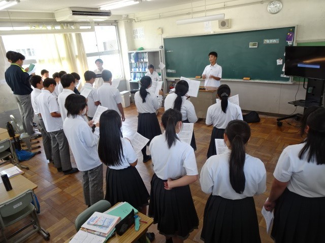 体育大会も終わり、次は合唱コンクールということで、3年生ではクラス練習が始まりました。音楽の授業でも練習しているのか、すでにそれなりのまとまりで歌えている様子。今後の仕上がり楽しみです。