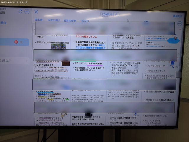 2年生では、COMPASSの情報を活用して、子どもたちが興味を示したキャリアをもつ人を調べて、ロイロノートを使って班で発表し合いました。
