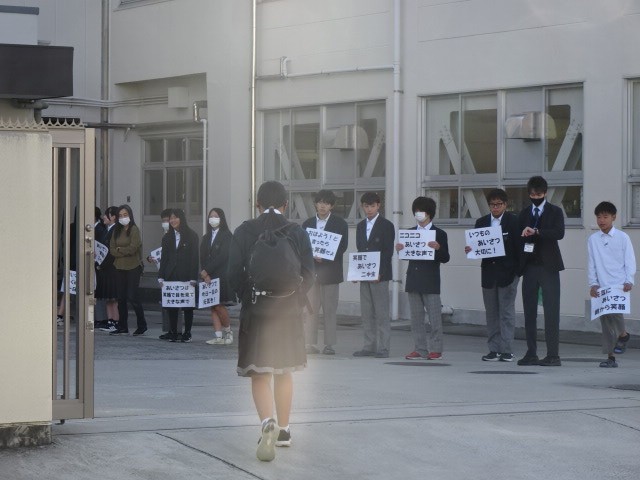 きのうから生徒会のメンバーがあいさつ運動に取り組んでいます。