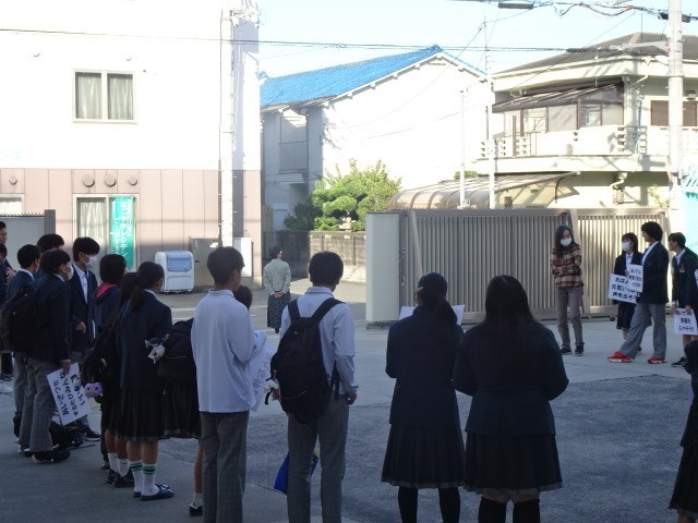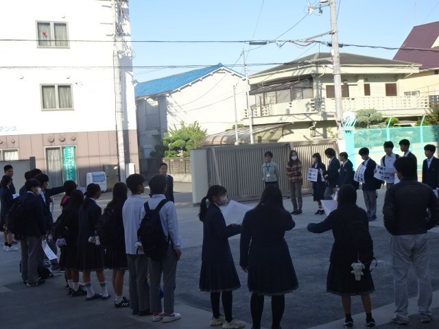 あいさつ運動3日目、きょうは文化委員が立ってくれました。明日まで取り組む予定です。