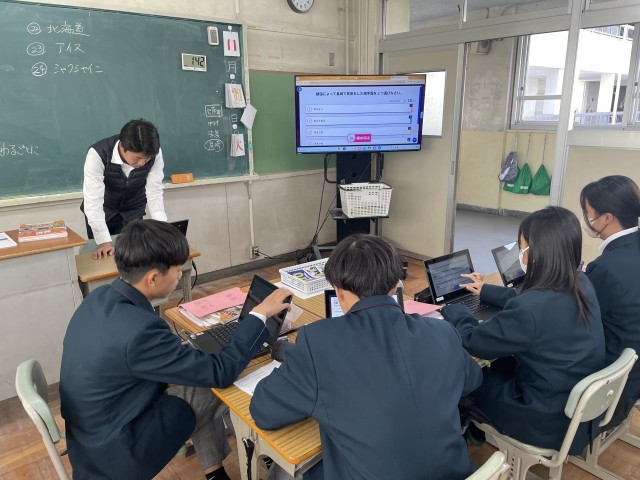 タブレットのソフトを使って、授業の復習に取り組んでました。