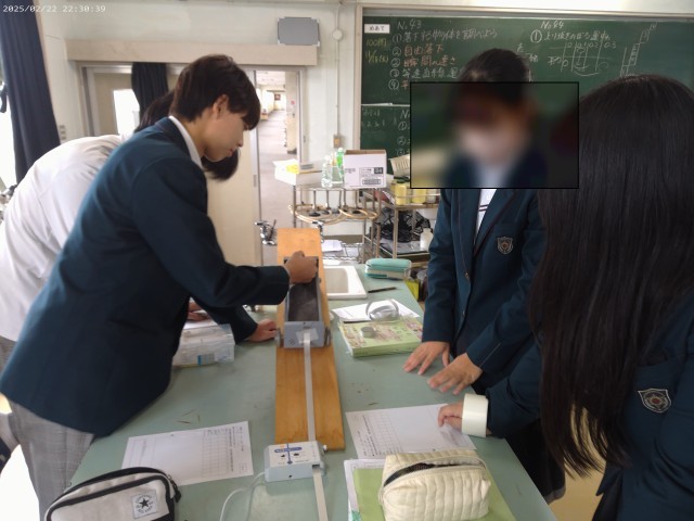授業が斜面を上げっていくとき、どのような動きをするのかを調べていました。