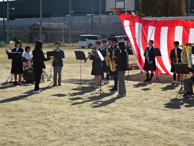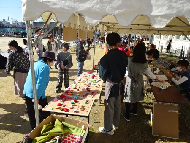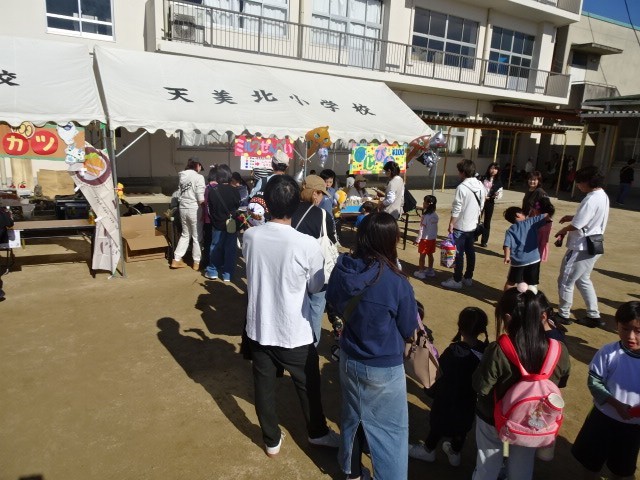 グラウンドいっぱいに出店や催し物が繰り広げられ、大変多くの来場者が来られました。舞台では二中吹奏楽部を皮切りに天美南小学校や天美北小学校の児童、みつばち保育園の子どもたちも発表に来てくれました。