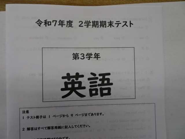 3年生は今日から三日間、期末テストです。1・2年生は明日からです。
