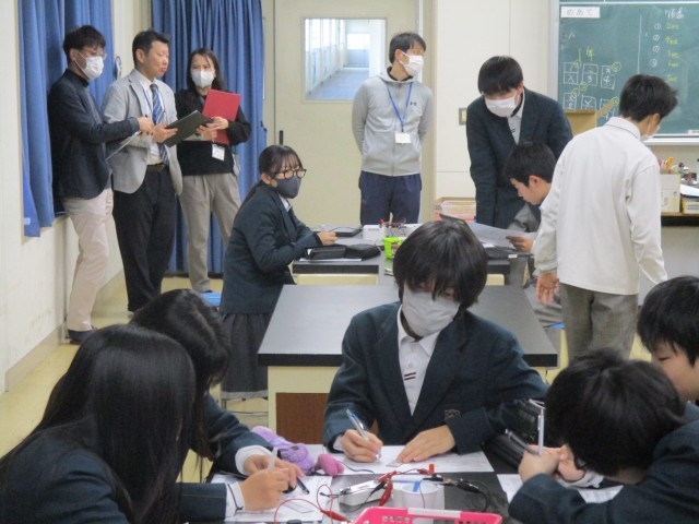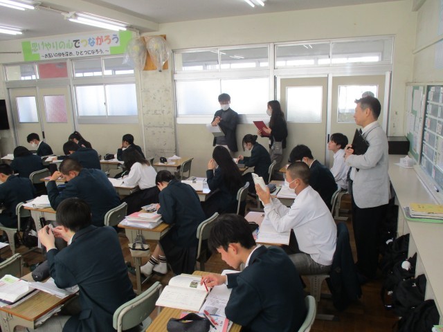 2年生の各教室を回り、授業の様子を見てもらいました。教室環境の整備や適切な支援の方法について教えていただきました。