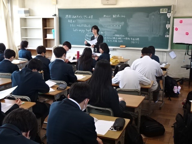 その後はクラスでの学活。それぞれの担任・副担任が自己紹介をしたり、学年通信を読み合わせて今年の目標を確認していました。